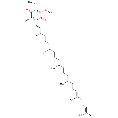 2-[(2E,6E,10E,14E,18E)-3,7,11,15,19,23-hexamethyltetracosa-2,6,10,14,18,22-hexaen-1-yl]-5,6-dimethoxy-3-methylcyclohexa-2,5-diene-1,4-dione | Ubiquinone 6 | 2-[(2E,6E,10E,14E,18E)-3,7,11,15,19,23-hexamethyltetracosa-2,6,10,14,18,22-hexaenyl]-5,6-dimethoxy-3-methyl-cyclohexa-2,5-diene-1,4-dione | Coenzyme Q6